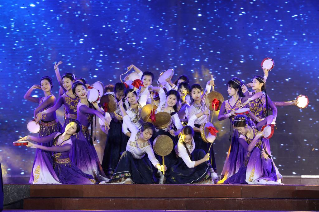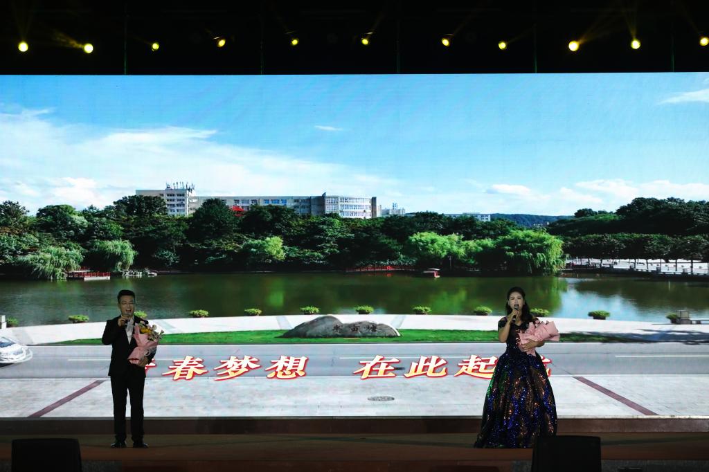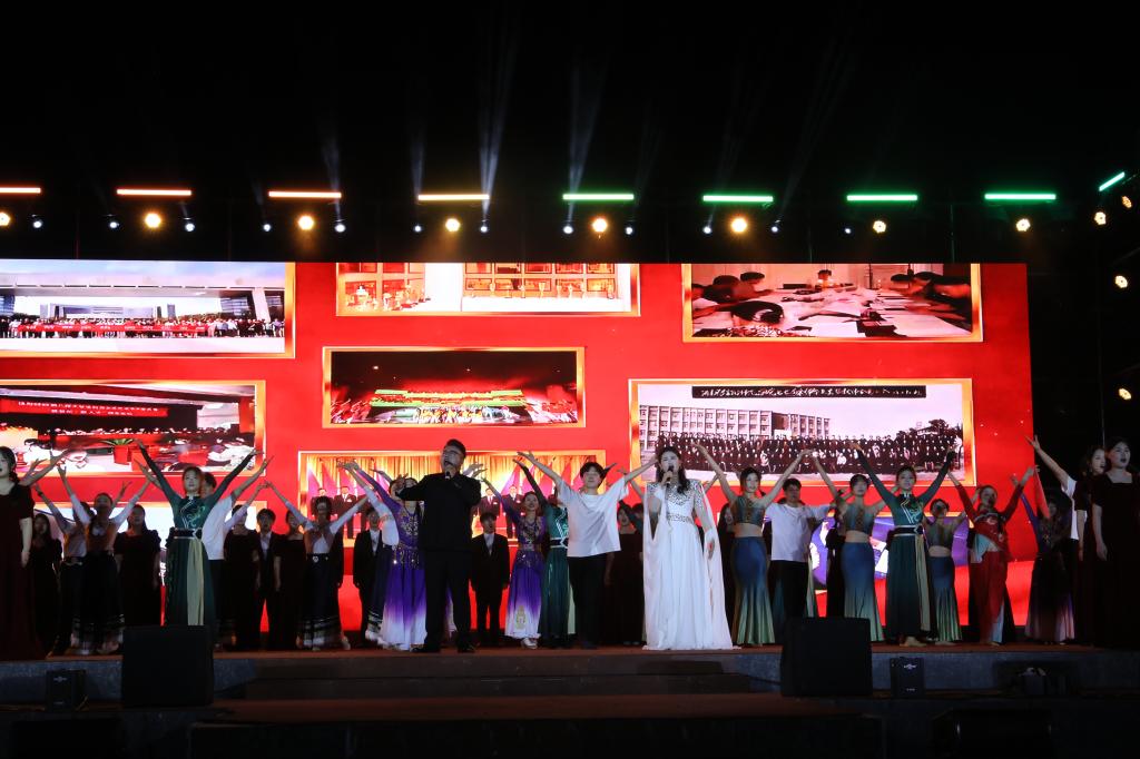 晚会开始前,校领导为第二届“校园明星”获得者颁奖。随后,俄罗斯图拉国立师范大学来华留学生和我校停云实训合唱团学子的歌声拉开了晚会帷幕。理工学院学子带来的舞蹈《九州同》,展现出底蕴深厚的中华文化和生生不息的民族精神,激励着当代青年锐意进取、开拓传承。歌曲《思念》《心中的谭山》和朗诵《薪传》共同表达出学子们对母校辉煌成就的崇敬和对老师们的无限眷恋之情。《西部放歌》《青春梦想 在此启航》号召广大青年放飞梦想,前往西部基层去建功立业,在党和人民最需要的地方绽放青春之花,也将晚会推向了高潮。舞蹈《陶醉了》《石榴花开映同心》《大地》以动人舞姿为墨,绘出民族团结同心圆的美丽愿景。来自刚果(布)的留学生宝岩石等同学联袂高歌,生动演绎各国青年在交流中增进彼此了解的和谐乐章。“厚德崇实砥砺品格高尚,善学敏行追求真理之光”,歌曲《托起民族的希望》饱含深情,诉说师大故事,歌颂师大辉煌,寄托美好祝福,突显巍巍师大,弘毅笃行,勇于托起民族希望的决心与担当,赢得全场喝彩。最后,晚会在歌声余韵中落下帷募。