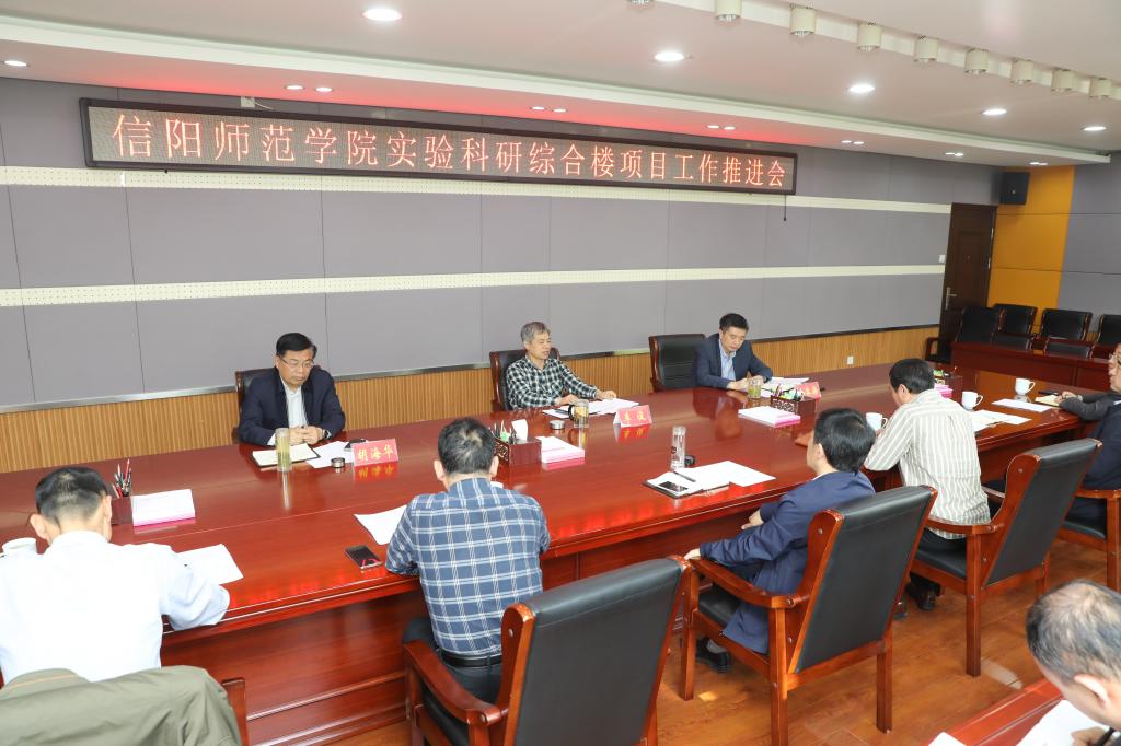 会上,余本海宣读了《信阳师范学院关于成立实验科研综合楼项目推进工作领导小组的通知》,基建处负责同志汇报了项目前期工作进展情况及下一步工作打算,领导小组成员就项目推进实施进行了充分讨论。