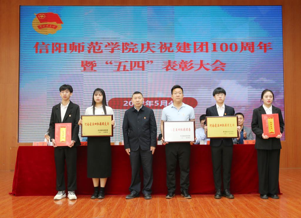 相关职能部门负责人先后宣读了共青团河南省委《关于表扬2021年度“河南省五四红旗团委(团支部)”“河南省优秀共青团员”“河南省优秀共青团干部”的通知》、《关于表彰信阳师范学院2021年优秀共青团员、优秀共青团干部的决定》、《关于表彰信阳师范学院2021年五四红旗团支部的决定》、《关于表彰信阳师范学院2021年度共青团工作先进单位的决定》等文件。本次大会对河南省“两红两优”获得者,马克思主义学院团委等12个“共青团工作先进单位”,致学书院小学教育专业2020级2班团支部等41个“五四红旗团支部”,朱星星等413名“优秀共青团干部”,康宇等1136名“优秀共青团员”给予表彰。