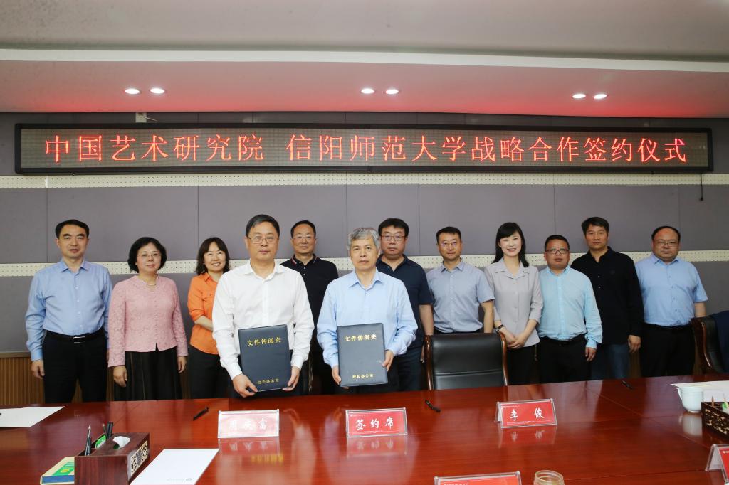 李俊、周庆富分别代表双方签署了战略合作协议,王文鹏、周庆富共同为“中国艺术研究院 信阳师范大学大别山红色文艺创作与研究基地”揭牌。与会人员还进行了深入的探讨交流。