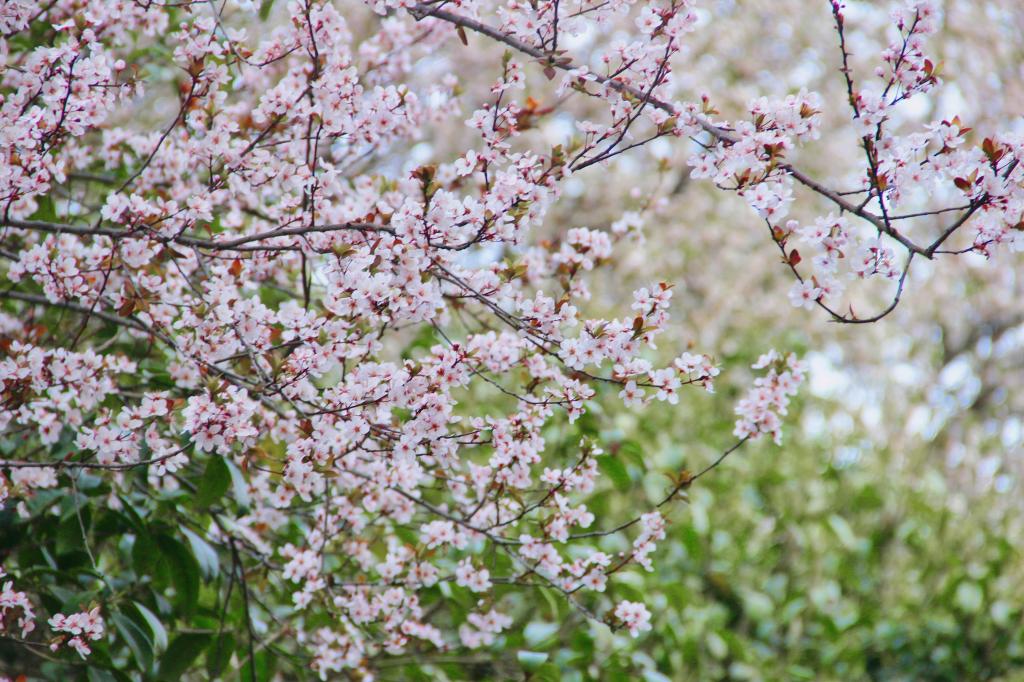 园林深处,是一片樱花林,倚树坐下,脚边不知名的草儿探出头,像是在与我打招呼,轻轻抚摸她嫩绿的发辫,揉揉她的腰肢,打开书本,戴上耳机,这一系列动作很是缓慢,怕惊扰林中的蜂、蝶和那些悄悄苏醒在这个季节的无名生物,也享受着耳边动人的音符,生活的美好也不过如此了吧,许是过于舒适,竟然感受了一丝倦意,朦胧之中,只能感觉到花瓣擦过我的脸颊,落在我的身上、手上……